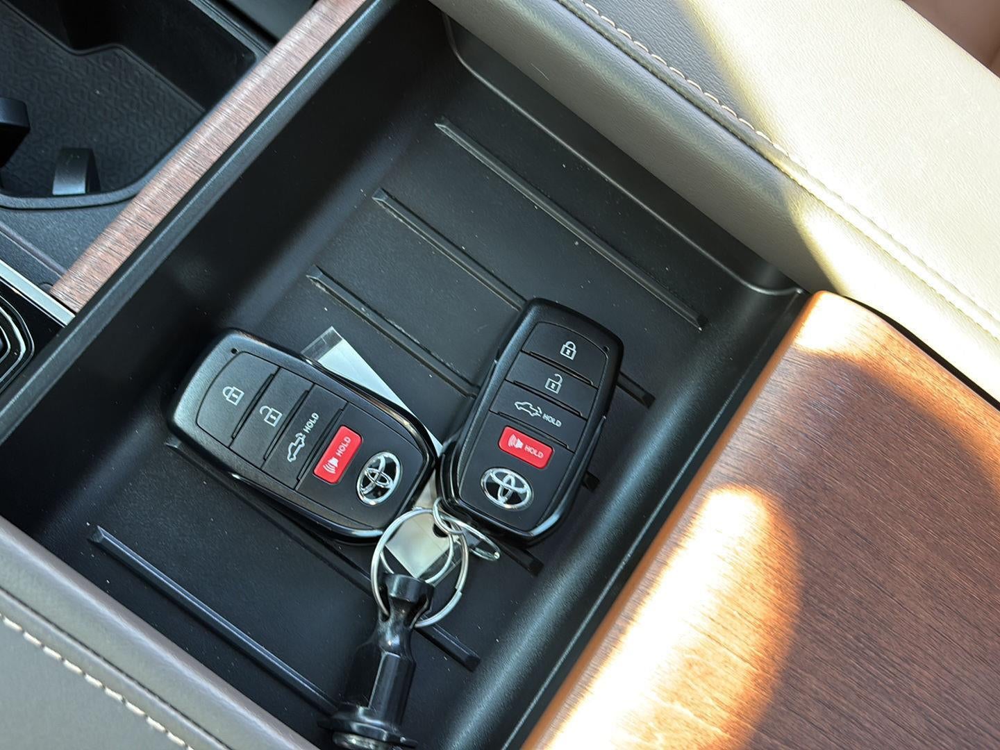 - Illuminated center console storage bin and glove box