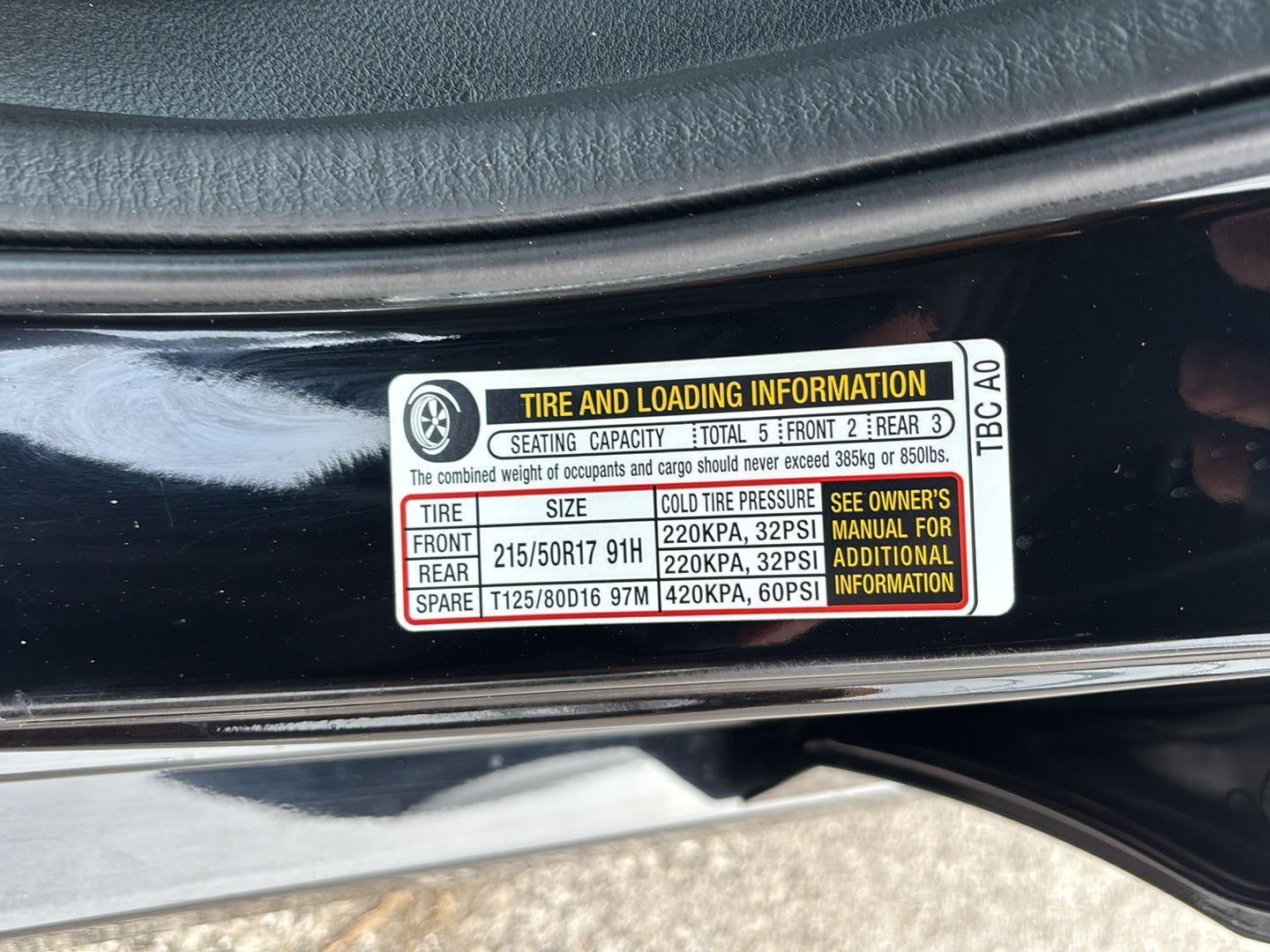 - Tires: 215/50R17 91H AS