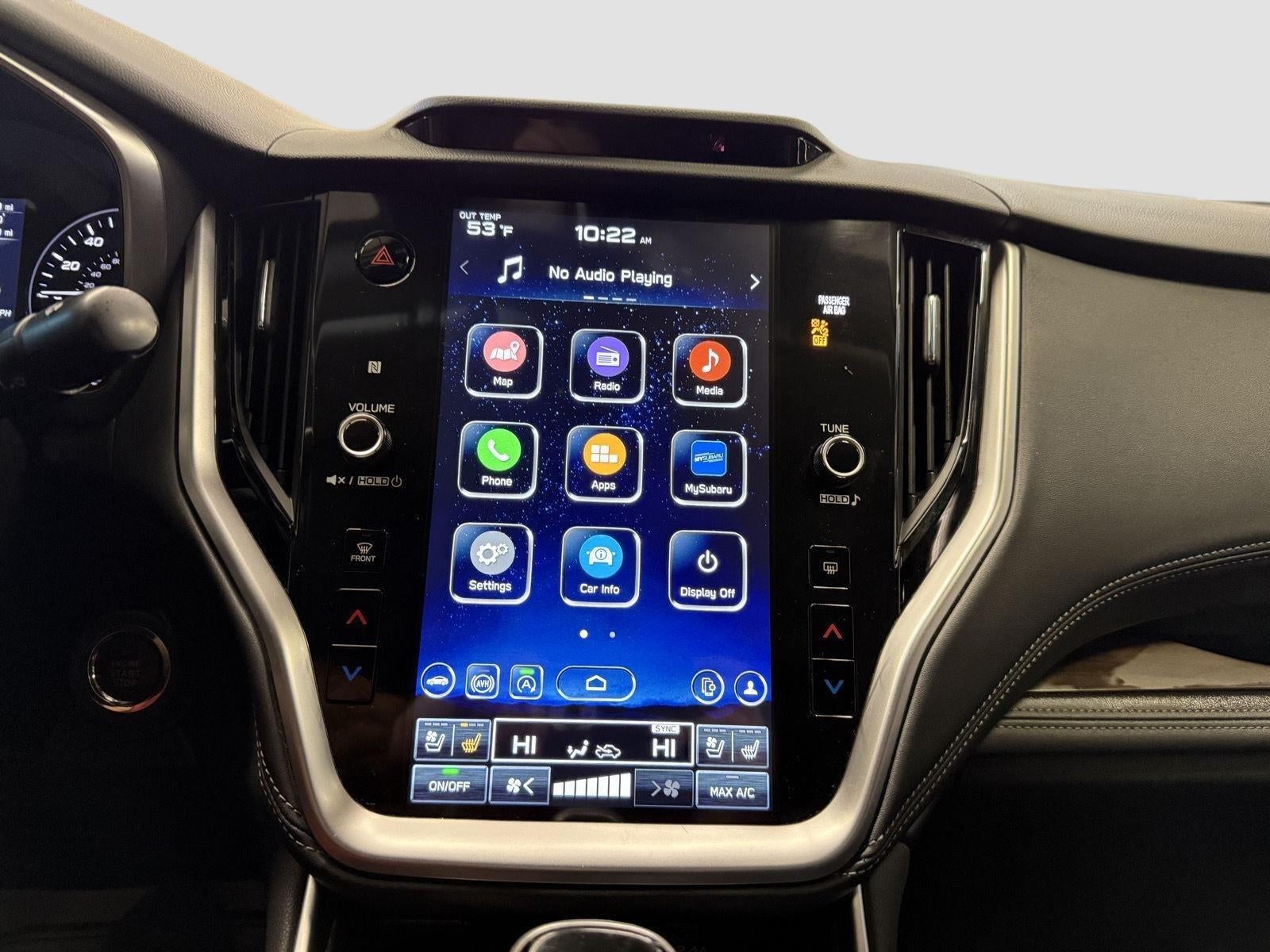 • Radio: Subaru STARLINK 11.6" Multimedia Nav System -inc: AM/FM stereo, HD Radio, valet mode, multi-touch gesture high resolution display screen, voice activated controls and navigation, Bluetooth® audio streaming and hands-free phone connectivity w/SMS text messaging, Near Field Communication (NFC), TomTom navigation software w/what3words, iPod control capability, SiriusXM All Access radio (4 months free trial/subscription required after), SiriusXM Traffic (3 years free trial/subscription required after), SiriusXM Travel Link (3 years free trial/subscription required after), smartphone integration w/full screen view and wireless connection: Android Auto, Apple CarPlay and STARLINK cloud applications, USB and Over The Air (OTA) audio system update, USB/Map Over The Air (MOTA) TomTom navigation system update (3 years free map updates), harman/kardon surround sound system w/12 speakers, 3.5mm illuminated auxiliary input jack, illuminated front and rear USB-A and USB-C input/charge ports, CD player w/MP3/WMA/CRR/RW file capability, roof mounted satellite and connected services antenna