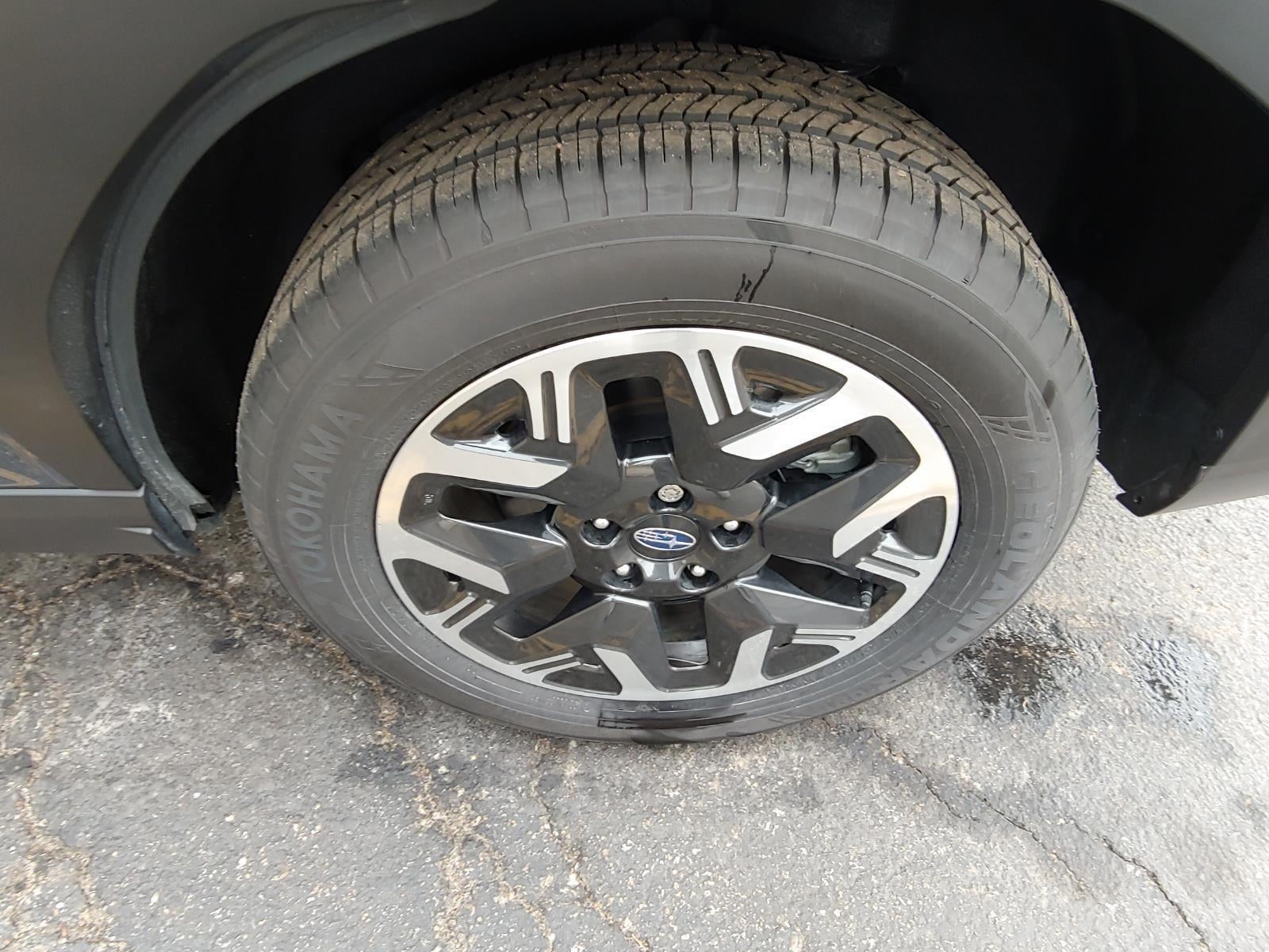 - Wheels: 17" x 7.0 J Dark Metallic Aluminum-Alloy -inc: machine finish and black wheel center cap w/Subaru 6 star logo