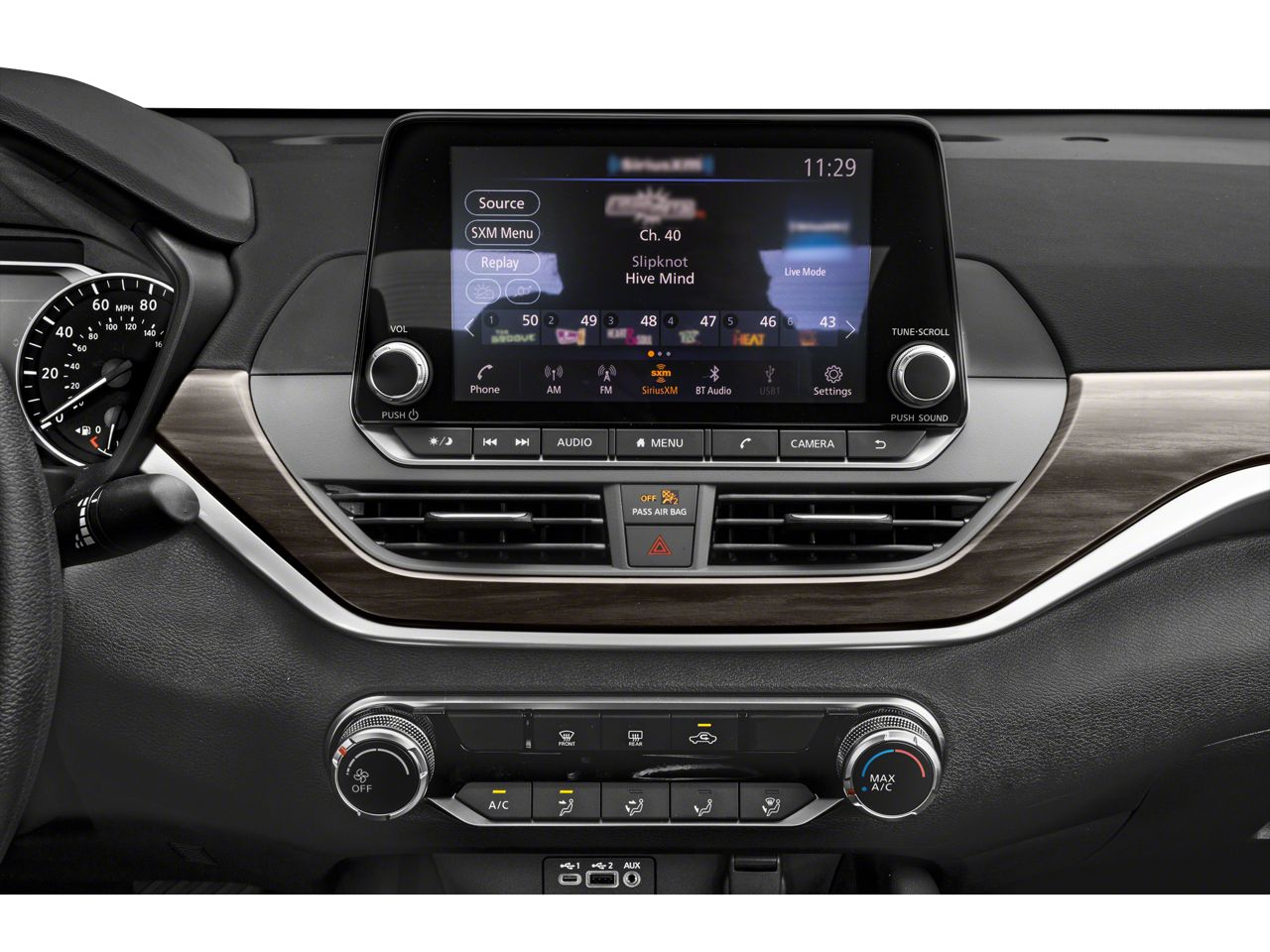 • Radio: AM/FM Audio System -inc: RDS, MP3 and aux-in, 6 speakers, NissanConnect featuring Apple CarPlay, Android Auto, 8" color display w/multi-touch control, 1 front illuminated USB port (type-C) for compatible devices, SiriusXM radio, Bluetooth® hands-free phone system, streaming audio via Bluetooth®, hands-free text messaging assistant, Siri Eyes Free and Google Assistant voice recognition