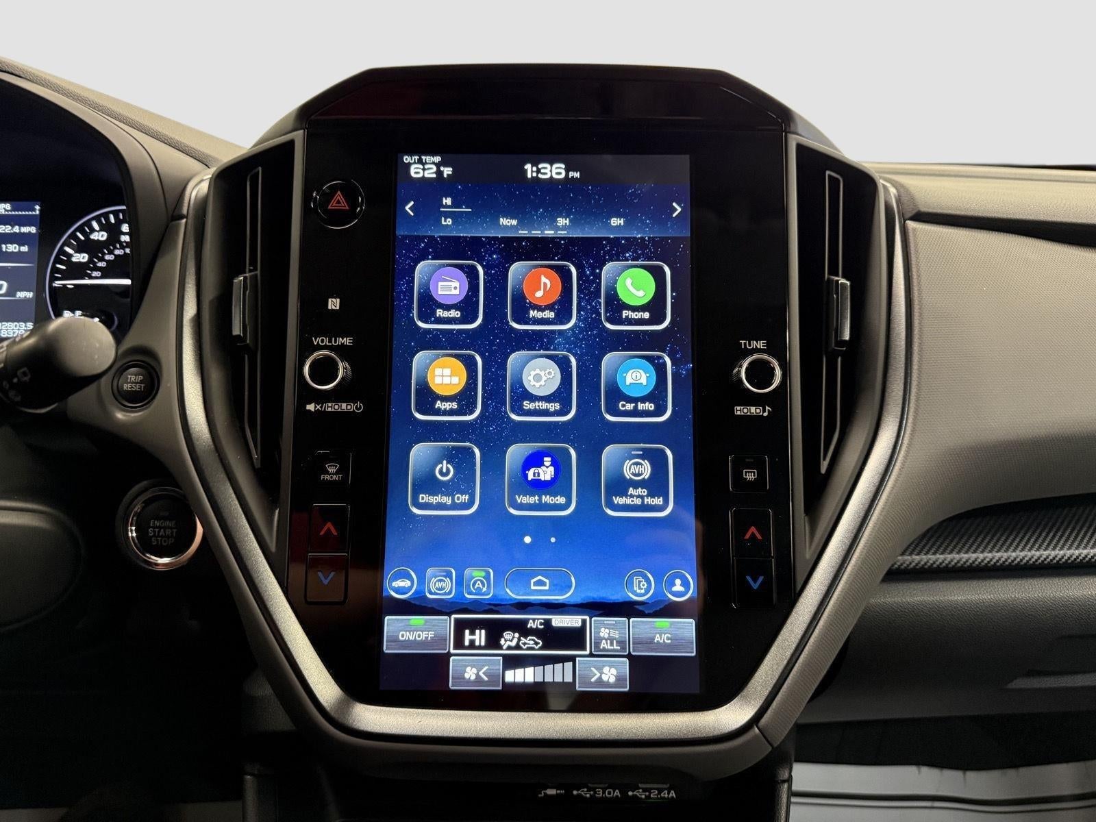 - Radio: Subaru STARLINK 11.6" Multimedia Plus Sys -inc: AM/FM stereo, HD Radio, multi-touch gesture high resolution display screen, voice activated controls, Bluetooth® audio streaming and hands-free phone connectivity, Bluetooth® hands-free SMS text messaging connectivity, iPod control capability, SiriusXM All Access Radio (4 months free trial included/subscription required after), smartphone integration: Android Auto and Apple CarPlay w/full screen view and wireless connection, USB and Over The Air (OTA) audio system update, steering wheel audio system and Bluetooth® control switches, 6 speakers (2 dash panel tweeter, 2 front door and 2 rear door), illuminated 3.5mm auxiliary input jack, illuminated front USB A and C input/charge ports and illuminated rear USB A and C charge ports